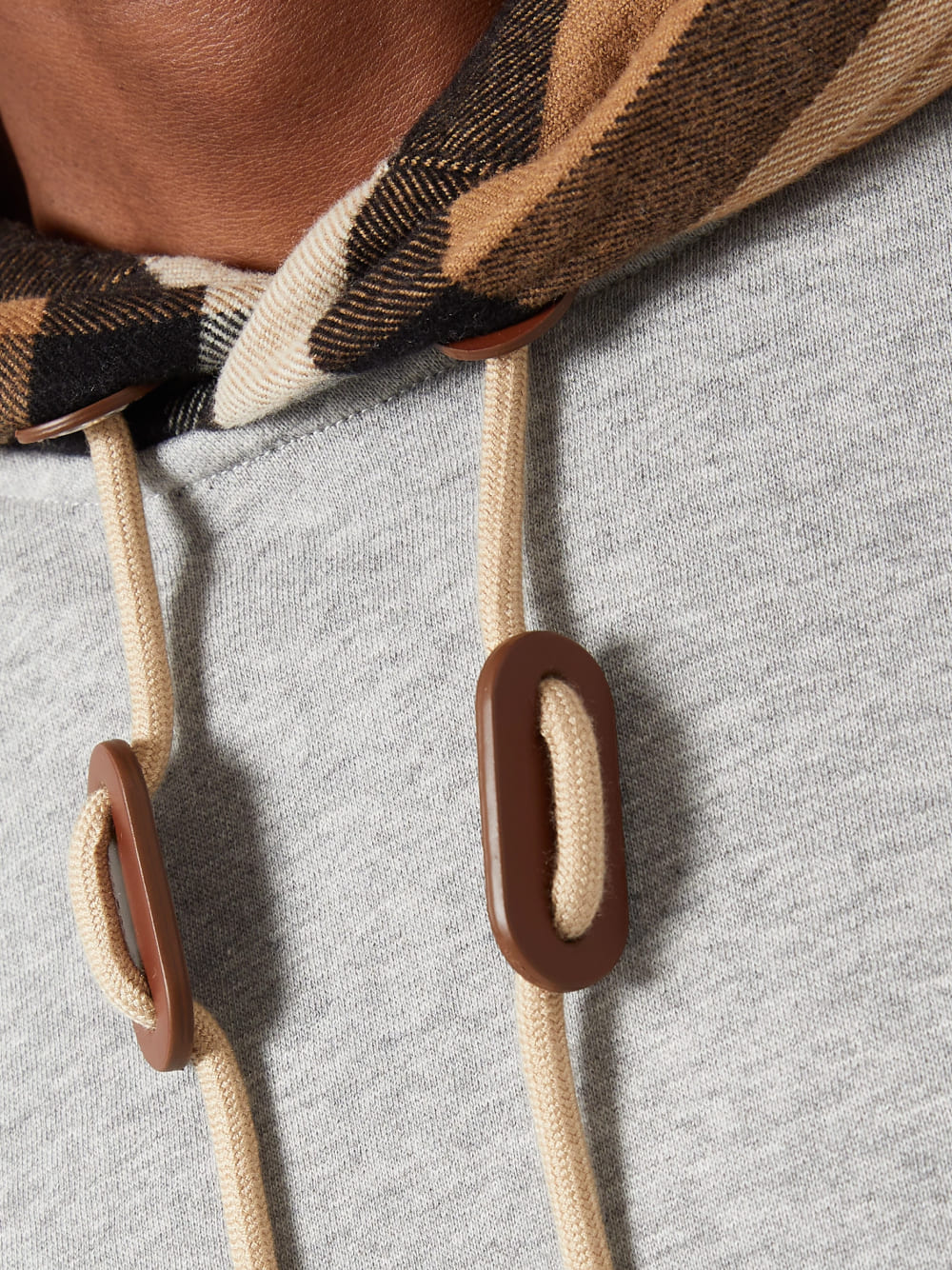 Burberry Check Trim Hooded Cotton Sweatshirt Gray